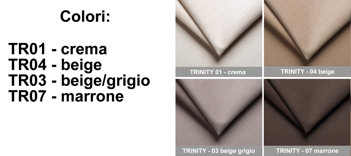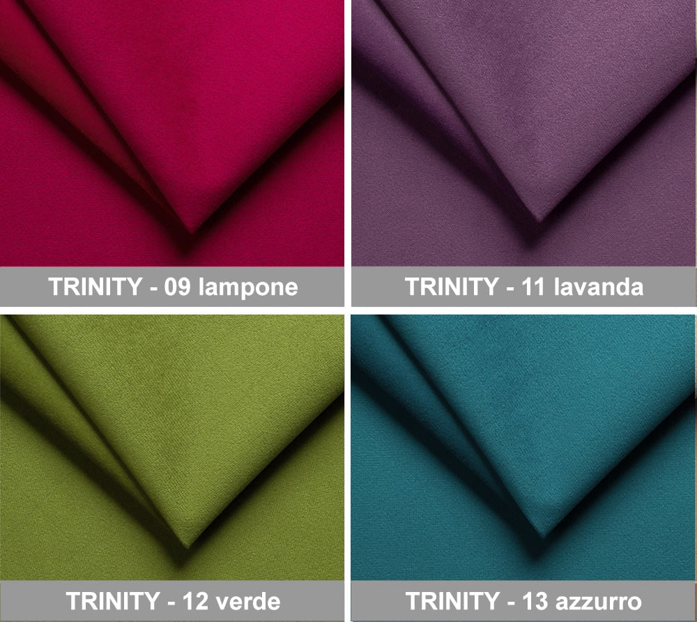 TEJIDO : TRINITY - Popular tejido de tapicería de terciopelo. Se caracteriza por una estructura delicada y una superficie recubierta de fina pelusa, suave y agradable al tacto. Sutiles matices de material y colores mate. ¡Resistente a la abrasión, a la descamación y a la luz! El tejido tiene las propiedades de absorción limitada de líquidos, lo que tiene un efecto positivo en el mantenimiento de la limpieza.