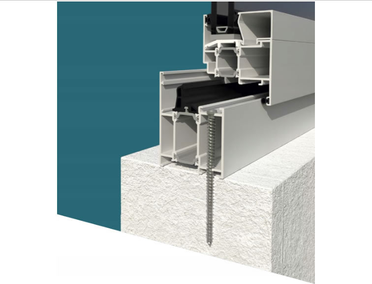 Viti di nuova concezione prevalentemente impiegate su calcestruzzo, muratura piena e mattoni forati per il fissaggio di porte e finestre in alluminio, PVC e legno senza l'impiego di tasselli o composti chimici.